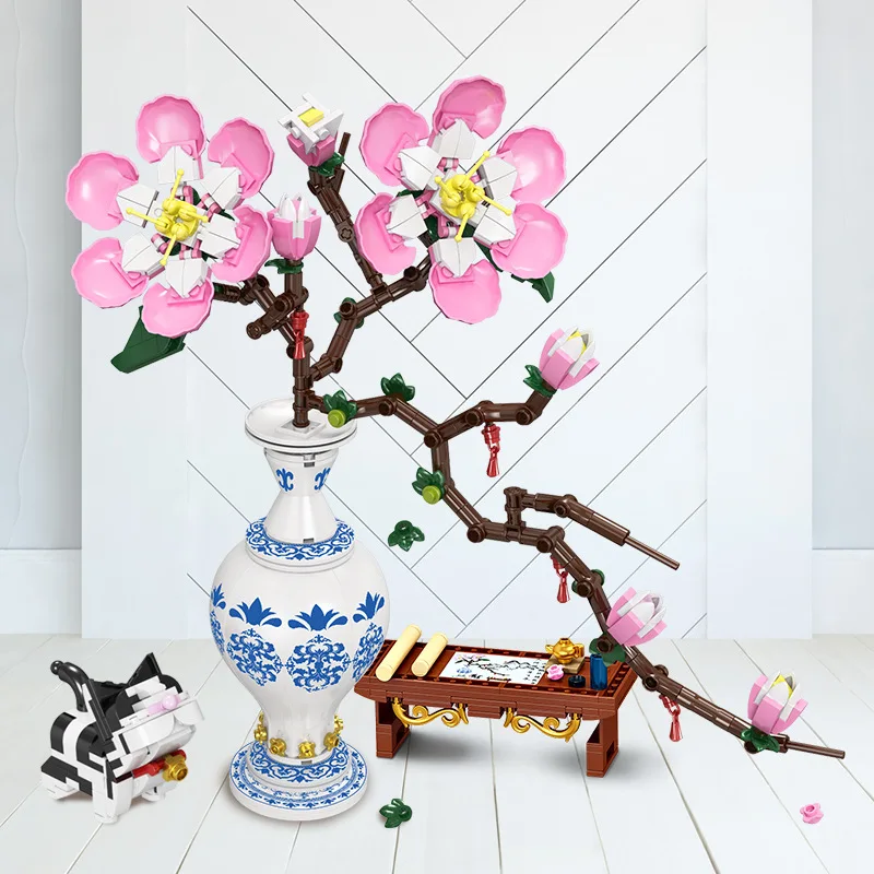 Peach Blossom Plant Blue Vase - Building blocks Set